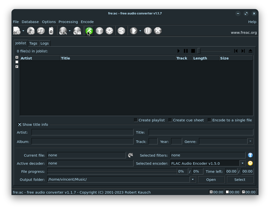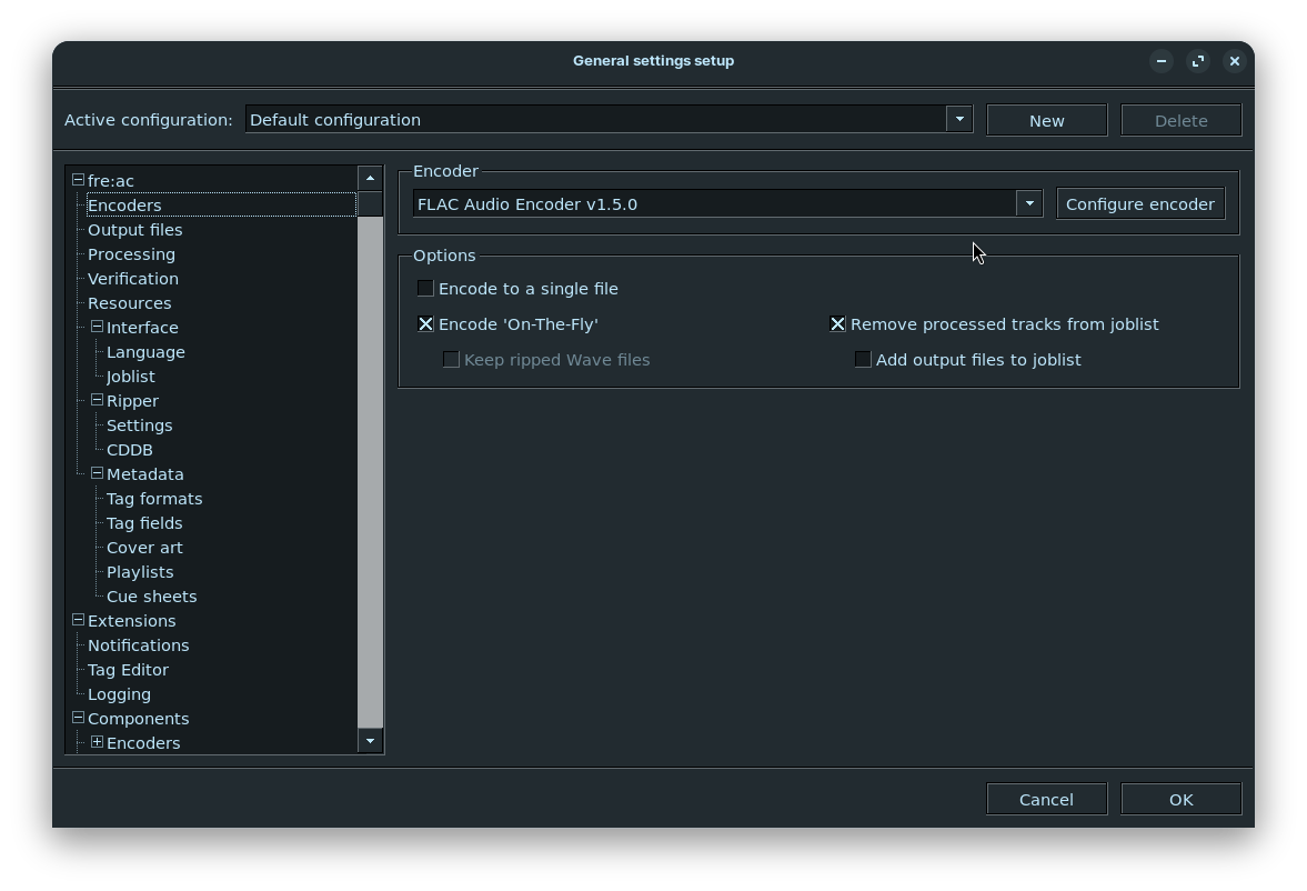 - Under encoder settings, change encoder to "FLAC Audio Encoder".