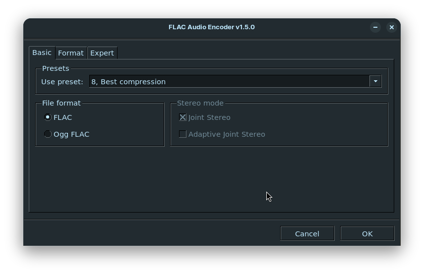 - Under encoder settings, change encoder to "FLAC Audio Encoder".